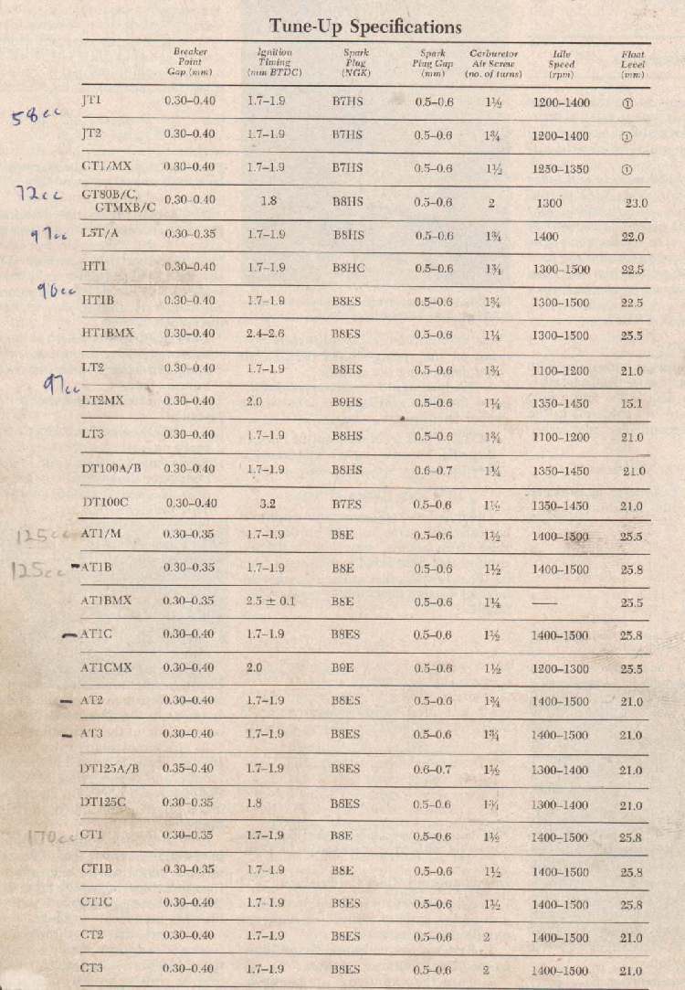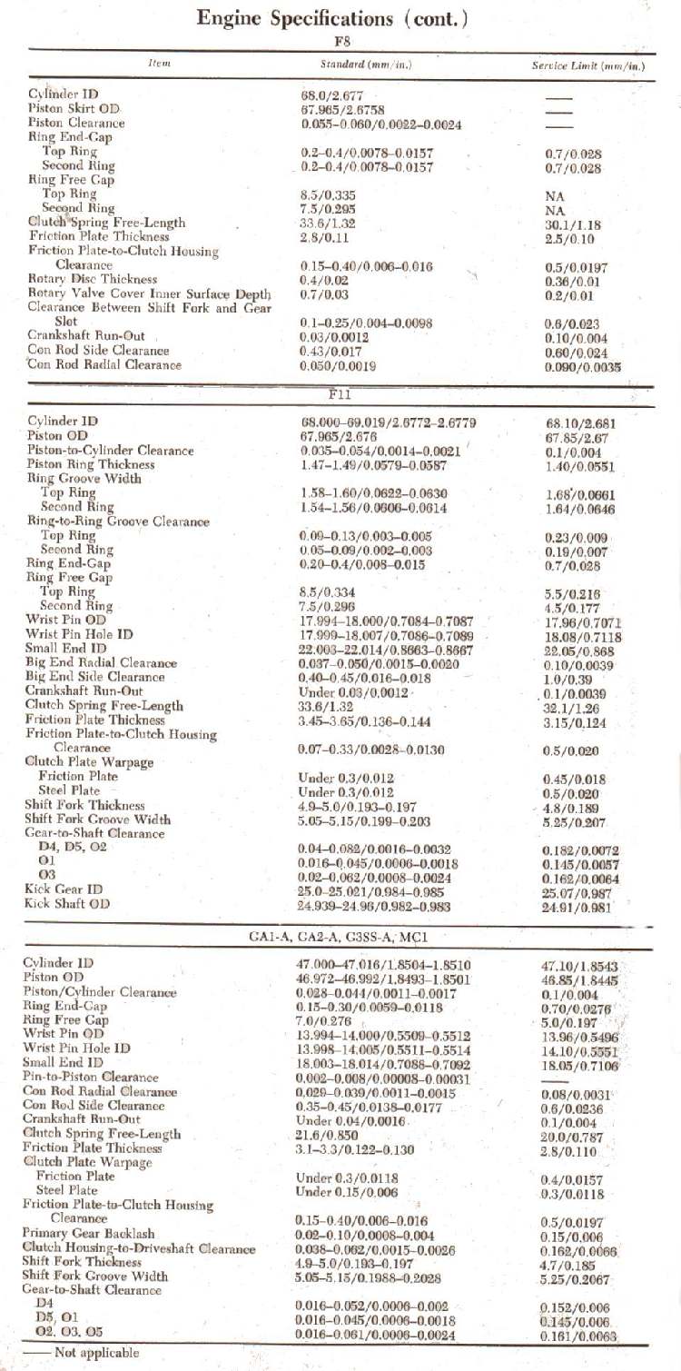 Here is a Zip file with 23 PDF files in it. With this you can easily download and print out 23 pages of general Motorcycle Specs for the years 1968 through 2003 similar to the above Specs.